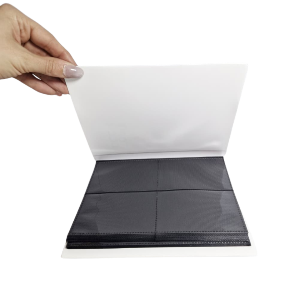 - 20 hojas de 8 bolsillos cada una (4 bolsillos por cara).