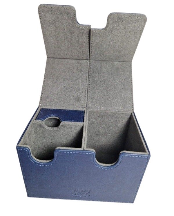 Protege y organiza tus cartas con este práctico Portamazos Premium para Cartas, perfecto para los coleccionistas y jugadores más exigentes. Este Portamazos Premium tiene dos compartimientos separados para almacenar hasta 160 cartas con Protectores, además de un cómodo compartimiento para guardar dados y contadores. Fabricado con una cubierta de eco-cuero y un interior de tela, tus cartas estarán más protegidas que nunca y tu baraja se vera realmente elegante.