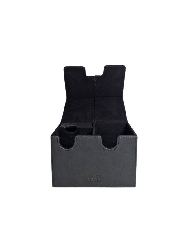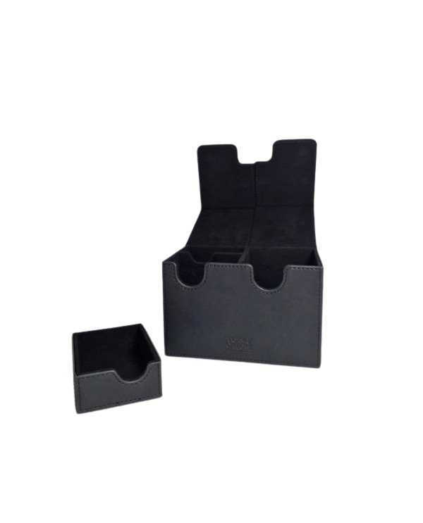 Protege y organiza tus cartas con este práctico Portamazos Premium para Cartas, perfecto para los coleccionistas y jugadores más exigentes. Este Portamazos Premium tiene dos compartimientos separados para almacenar hasta 160 cartas con Protectores, además de un cómodo compartimiento para guardar dados y contadores. Fabricado con una cubierta de eco-cuero y un interior de tela, tus cartas estarán más protegidas que nunca y tu baraja se vera realmente elegante.