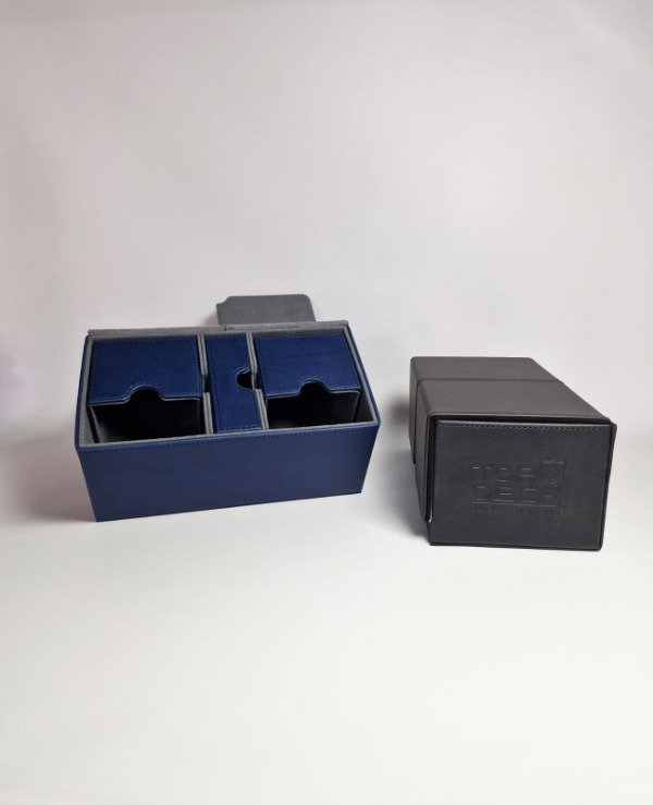 Protege y organiza tus cartas con este práctico Portamazos Premium para Cartas, perfecto para los coleccionistas y jugadores más exigentes. Este Portamazos Premium tiene dos compartimientos separados para almacenar hasta 160 cartas con Protectores, además de un cómodo compartimiento para guardar dados y contadores. Fabricado con una cubierta de eco-cuero y un interior de tela, tus cartas estarán más protegidas que nunca y tu baraja se vera realmente elegante.